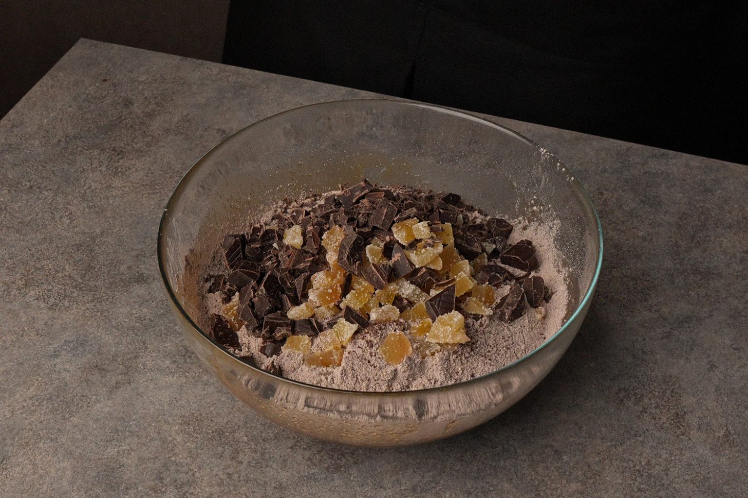 Roughly chop the chocolate and cut the crystallized ginger into smaller pieces. Set some of each aside for decoration.